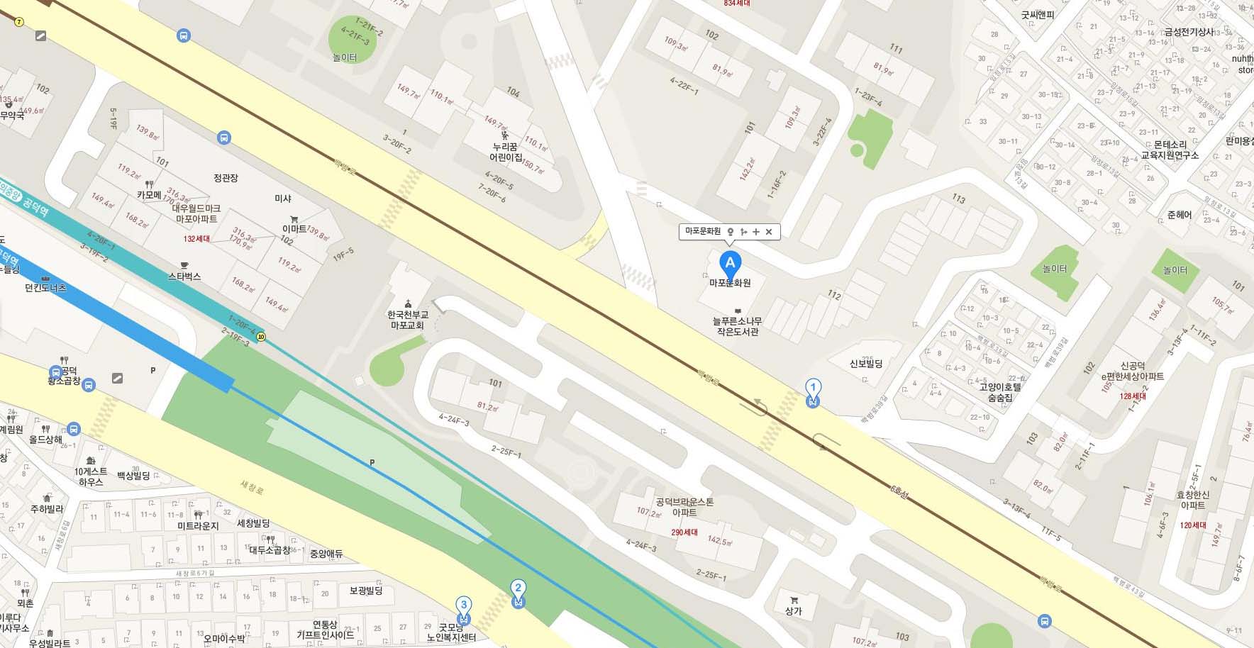 서울 지방문화원 위치 ⑭ 마포문화원 어디에 있나? 박은석 기자 | 2019년 11월 18일 | 서울문화 | 댓글 없음 마포문화원 설립 : 1997년 마포문화원 전화 : 02-312-1100 마포문화원 주소 : 서울시 마포구 백범로 227 서울문화원 박은석 기자 Related Posts 컨셉과 새로운 가치 창조 <4> 본질에 대한 사명과 비전 댓글 없음 | 11월 14, 2018 은평문화원, 제7대 원장에 김명자 원장 중임 댓글 없음 | 1월 31, 2019 감리교 비상시국기도회 대한문광장 (2014.05.19) 댓글 없음 | 10월 13, 2017 서울문화원 음유시인 첫 번째 뮤직비디오 ‘미스터리(Mystery)’ <1> 댓글 없음 | 3월 1, 2019 About The Author 박은석 기자